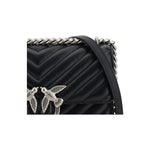The Mini Love leather Shoulder Bag by Pinko is a perfect mix of elegance and functionality. The front closure with magnetic flap ensures safety and practicality, while the iconic gold-plated Love Birds logo embossed on the front adds a touch of distinctive luxury. The quilted and padded design is not only refined, but also gives a feeling of softness and comfort. The double internal compartment offers enough space to keep everything in order, while the sliding chain shoulder strap allows you to adjust it to your preferred height, making it perfect for any occasion. The internal slip pocket and the tone-on-tone embroidered brand monogram on the back add exclusive details that make this bag a must-have.