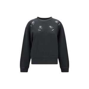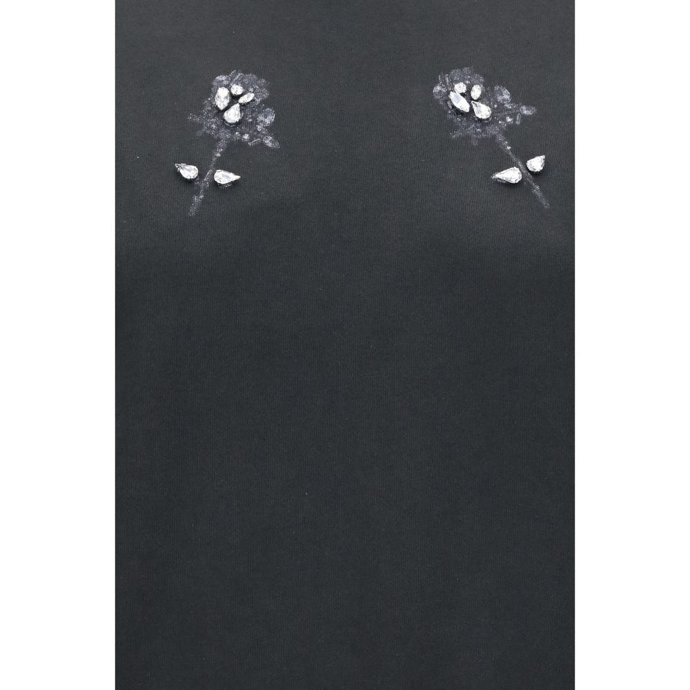 Pinko’s Rhinestone Sweatshirt is a garment that combines comfort and femininity with a bright touch. Featuring a classic ribbed crew neck, it has an elasticized hem and cuffs for a comfortable and defined fit. On the front, delicate applied rhinestones in the shape of flowers add light and personality to the design, turning a casual garment into a distinctive wardrobe staple. Perfect for adding a touch of glamour to even the simplest looks.