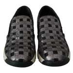 PINKO Silver Black Slip-on Sequence Design Sneakers Shoes