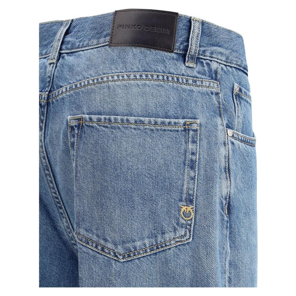 Pinko’s Lovely cotton Jeans feature a wide-leg, five-pocket design with a mid-rise waist and front button-and-zip closure. Belt loops at the waistband allow the fit to be adjusted. They also feature slits on the inner side panels, an original detail that adds a touch of style. The iconic leather patch with the brand’s signature pressure print on the back gives the garment a distinctive and refined touch.