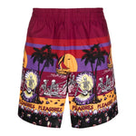 illustration-print cotton deck shorts from Pleasures featuring burgundy, multicolour, cotton, elasticated waistband, illustration-style print, thigh-length, two side slit pockets, rear jetted pocket and above-knee length. Beach printed shorts Size and Fit - This piece fits true to size. We recommend you get your regular size. Model is 1,84m / 6ft 1in wearing size M