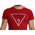 这款 Guess 的红色弹力棉 T 恤可为您的衣柜增添一抹亮色。这款上衣采用经典圆领和短袖设计,是休闲时尚的典范。常规版型确保舒适,而独特的 Guess 标志则增添了一丝奢华感。适合任何场合,是欣赏高品质和时尚人士的必备单品。