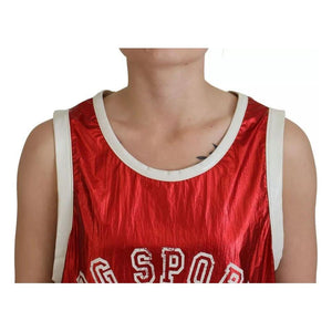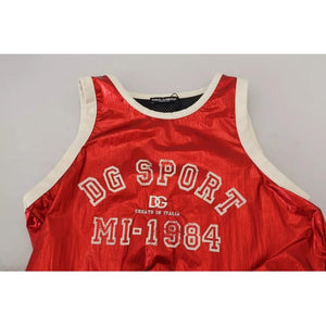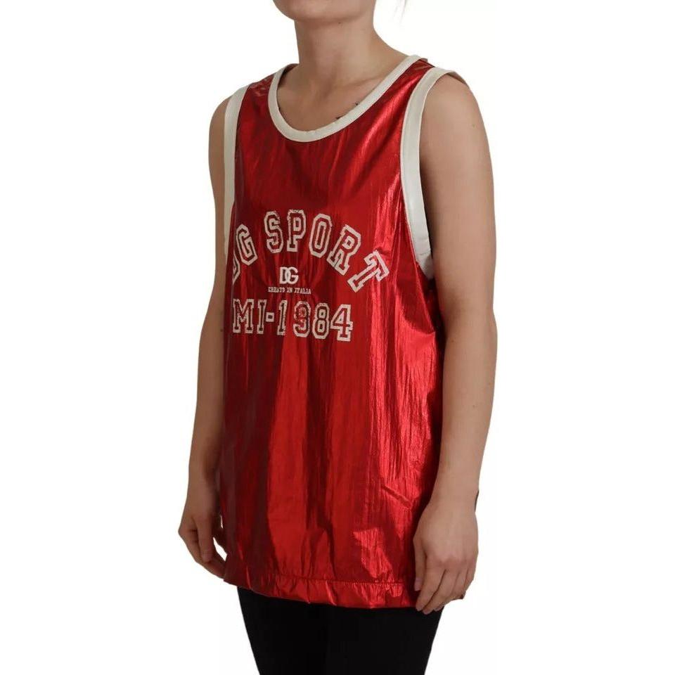 Dolce & Gabbana Red Nylon Logo Print Sleeveless Jersey Top