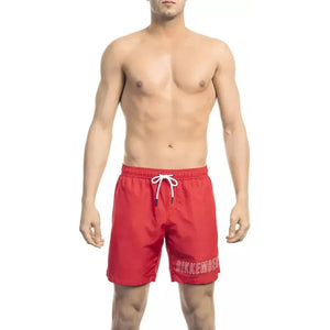 这款醒目的红色泳裤底部饰有俏皮的正面印花,非常适合海滩出游或泳池边休闲。这款 Bikkembergs 短裤采用优质 100% 涤纶制成,舒适耐用。松紧腰带和抽绳确保舒适且可调节,方便的侧袋为您的泳装增添了实用性。