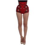 迷人红丝质花卉刺绣短裤