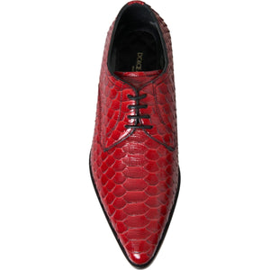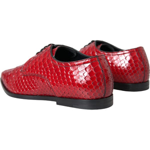 Dolce & Gabbana Red Textured Varnished Derby Men Formal Shoes