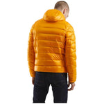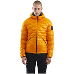 Embrace the essence of boldness with this vibrant orange Refrigiwear down jacket. Precision-crafted for the fashion-forward individual, the jacket flaunts a sleek nylon exterior, feather padding for unmatched warmth, and a cozy fur-lined hood. Its slim-fit design ensures a modern silhouette while practicality is maintained with a secure front closure and ample pocket space both internally and at the sides. A standout piece for those who dare to be different.