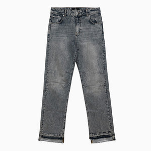 Blue cotton denim washed out regular jeans from Represent featuring five classic pockets, belt loops, a front zip and button fastening, a raw cut hem and an embroidered logo on the back pocket. Size and Fit - Model wears size 32 Model measurements: Height: 187 cm Chest: 102 cm Waist: 76 cm Hips: 92 cm
