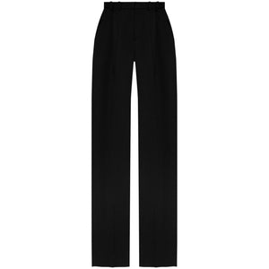 black wool grain de poudre straight leg high-waisted belt loops hook and zip fly fastening two side slit pockets two rear welt pockets Wool wide-leg trousers Size and Fit - This piece fits true to size. We recommend you get your regular size. Model is 1,75m / 5ft 8in wearing size 36 (FR)