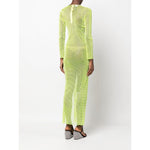 Diamonds rhinestone-embellished mesh maxi dress from SANTA BRANDS featuring lime green, cotton blend, semi-sheer construction, mesh panelling, rhinestone embellishment, round neck, long sleeves, side slits, rear zip fastening and ankle-length. Rhinestones embellished long dress Size and Fit - This piece fits true to size. We recommend you get your regular size. Model is 1,75m / 5ft 8in wearing size UNI