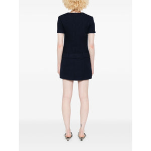 navy blue concealed rear zip fastening two chest welt pockets two front welt pockets belted waist Boucle mini dress Size and Fit - This piece fits true to size. We recommend you get your regular size. Model is 1,75m / 5ft 8in wearing size 8 (UK)
