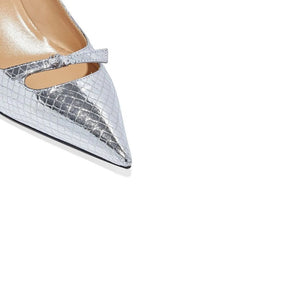 – Composition: 100% calf leather – Inner: Leather – Insole: Leather – Sole: Leather – Pointed toe – Branded insole – Slip-on design – Heel 4,5 cm – Top knotted cutout detail – Snake effect – Made in Italy – Gender: WOMEN –
