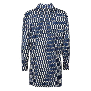 Shirt made of viscose, multicolor, polo collar, front button closure, long sleeves, side slits, straight hem, relaxed fit. Printed shirt Size and Fit - This piece fits true to size. We recommend you get your regular size. Model is 1,75m / 5ft 8in wearing size 36 (ES)