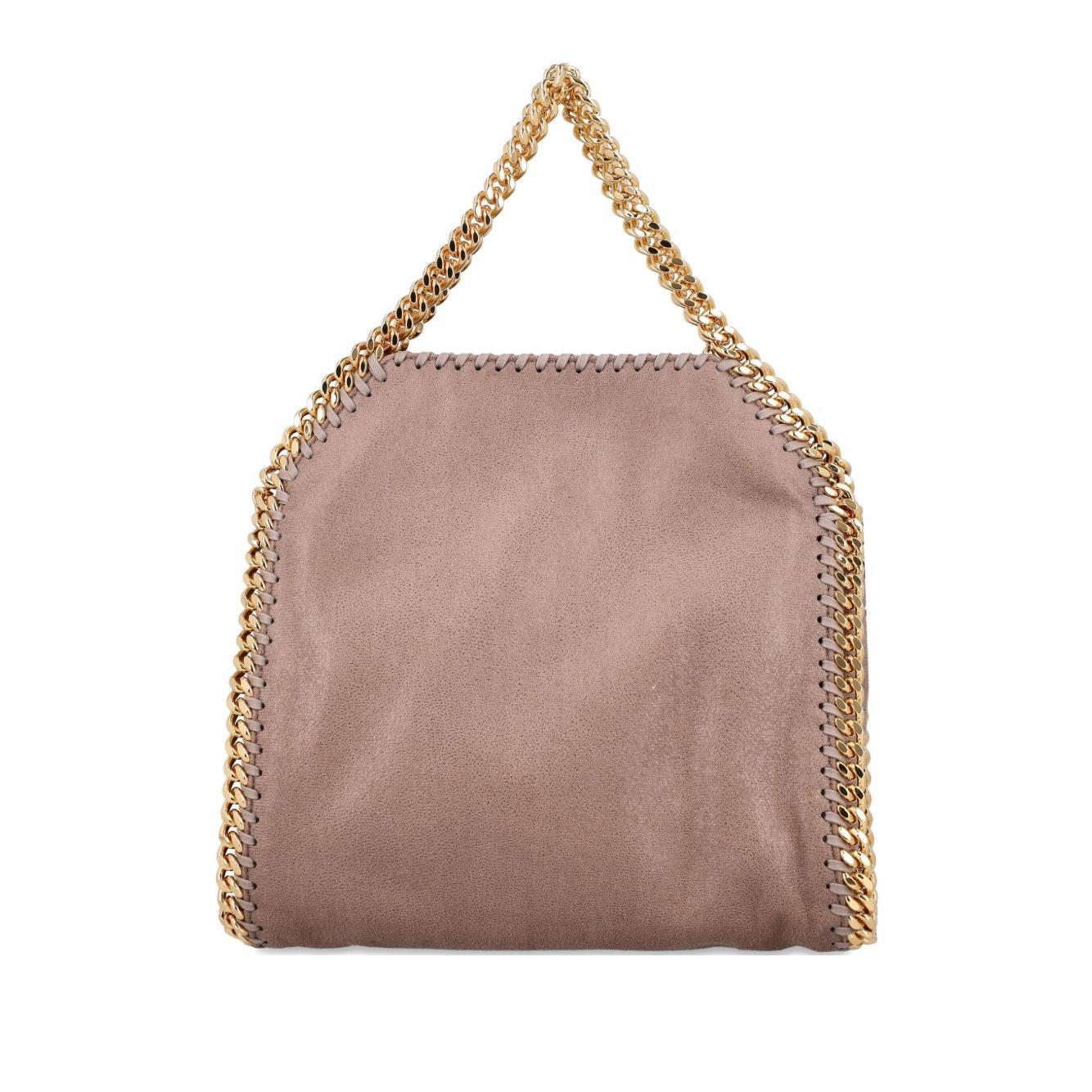 taupe beige chain-link strap contrast stitching logo plaque detail structured silhouette Falabella mini handbag Size and Fit - Width 37 cm, Height 36 cm, Depth 9 cm, Handle 20 cm, Shoulder strap 100 cm