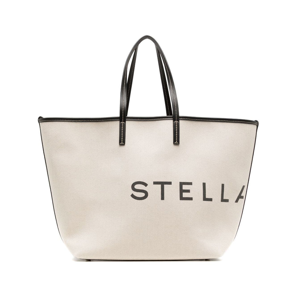 logo-print cotton tote bag from STELLA MCCARTNEY featuring ecru, cotton/leather, logo print to the front, two top handles and main compartment. We've partnered with Good On You — an independent agency that rates how brands perform in relation to their impact on the planet, people and animals, with a multi-criteria rating simplified to a five points scale. In order to be awarded our conscious label, larger brands need to score a minimum of four out of five ('Good'), while smaller brands must score at least three out of five ('It's a start'). This item comes from a brand rated four out of five ('Good') by Good on You. Please note, this is a brand-level rating and does not guarantee that this product is made with conscious materials.. Learn more about what makes a product Conscious on our Conscious Criteria page. Logo canvas tote bag Size and Fit - Width 15,75 in / 40 cm