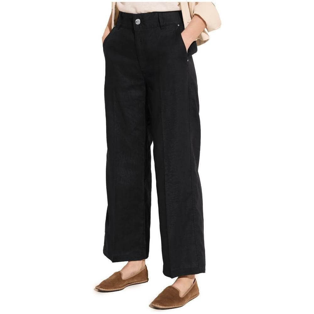 The Street One women’s palazzo trousers, model 377315, are crafted from 100% pure linen, ensuring a fresh and lightweight feelâperfect for warmer seasons. The wide-leg design offers exceptional comfort and creates an elegant, contemporary look suitable for both casual and formal occasions. Featuring a front button and zip closure for practical wear, these trousers also include side pockets for added functionality without compromising on style. The clean lines and straight cut flatter the silhouette, making these trousers a versatile piece to pair with shirts or tops. The natural linen fabric is breathable and gentle on the skin, ideal for staying stylish on hot days.
