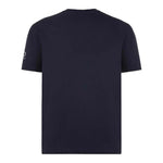 Suns, cotton, stretch, dark blue, crew-neck T-shirt with elastic sleeves and logo on left sleeve.