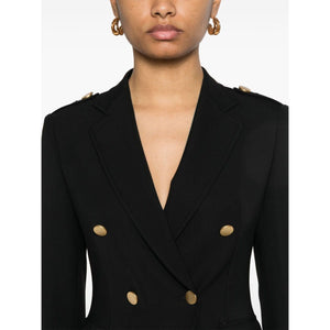 black double-breasted button fastening shoulder pads two side flap pockets rear central vent Wool double-breasted jacket Size and Fit - This piece fits true to size. We recommend you get your regular size. Model is 1,75m / 5ft 8in wearing size 40 (IT)