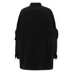 black cotton classic collar concealed front fastening long sleeves buttoned cuffs multiple cargo pockets curved hem Fern denim jacket Size and Fit - This piece fits true to size. We recommend you get your regular size. Model is 1,75m / 5ft 8in wearing size 40 (IT)