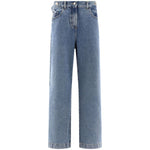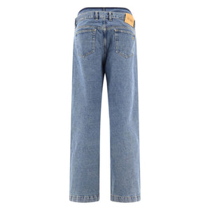indigo blue washed denim embroidered logo to the rear logo patch to the rear classic five pockets front button and zip fastening belt loops straight leg straight hem Wide-leg denim cotton jeans Size and Fit - This piece fits true to size. We recommend you get your regular size. Model is 1,75m / 5ft 8in wearing size 27 (WAIST CM)