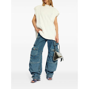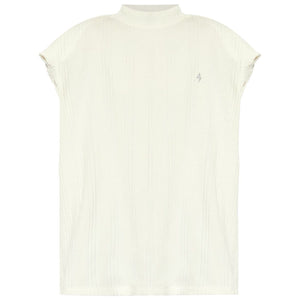 ivory white cotton chunky ribbed knit raised logo detail crew neck cap sleeves straight hem Logo cotton t-shirt Size and Fit - This piece fits true to size. We recommend you get your regular size. Model is 1,75m / 5ft 8in wearing size 40 (IT)