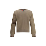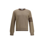 Thom Browne’s cotton Milano Sweater represents the perfect balance of classic elegance and iconic details. Made from pure cotton, it features a ribbed crew neck, ribbed cuffs and hem with side slits that can be adjusted via buttons for a customized fit. On the left sleeve stand out the unmistakable contrasting horizontal bands, the distinctive symbol of the maison. A refined garment, ideal for completing formal and casual looks with an unmistakable touch.