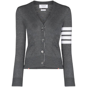grey wool V-neck front button fastening long sleeves ribbed cuffs 4Bar wool cardigan