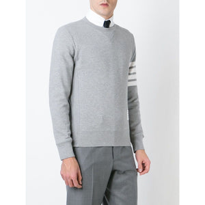 Pebble grey Made from loopback cotton jersey Crew neck with V insert Long sleeves 4-Bar stripe at left arm Name tag appliqué at left side Tricolour grosgrain loop at nape Ribbed trims Straight hem with button side fastening Relaxed fit Crafted in Japan 4Bar cotton sweatshirt
