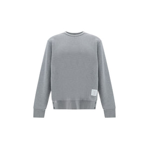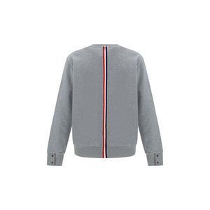 Cotton Sweatshirt by Thom Browne, crew neck, ribbed cuffs with buttons, vertical band detail with iconic brand color stripes on back panel, side slits with buttons, ribbed hem, iconic brand logo patch applied to front, regular fit.