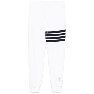 white elasticated drawstring waistband two side slit pockets logo patch to the side signature grosgrain loop tab 4Bar cotton sweatpants