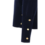 Thom Browne’s virgin wool Sweater is an iconic piece with a clean yet richly tailored design. A classic crew neck combines with a ribbed high hem, featuring practical side buttons that allow you to adjust the slits with discretion and functionality. The cuffs, also ribbed and button-fastened, add a touch of structured elegance. Distinguishing the sweater are the brand’s iconic horizontal bands, positioned on the left arm, which lend instant recognition and a graphic accent typical of the Thom Browne style.