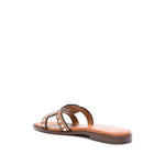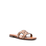 camel brown calf leather smooth grain stud detailing slip-on style square open toe branded leather insole flat leather sole Leather flat sandals Size and Fit - Heel 0,6 in / 1,5 cm