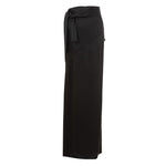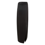 Tom Ford Black Satin Extra Long Skirt. Tight pencil model with back slit, concealed zip closure on the back, fabric waist belt. Diagonal detail in double fabric.