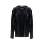 Tom Ford Black Velvet Long Sleeve Sweater. Crewneck, wide sleeve, relaxed fit, soft line.