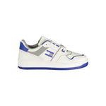 Step into the realm of effortless style with these striking Tommy Hilfiger sneakers. A harmonious blend of royal blue pops against the pristine white backdrop, accentuated by contrasting details that exude a suave, athletic charm. The iconic Tommy Hilfiger logo is tastefully emblazoned, asserting its heritage with grace. Designed for the modern man on the move, they offer a playful twist on the quintessential sports shoe, merging fashion with the comfort of laces and a meticulously crafted material composition.