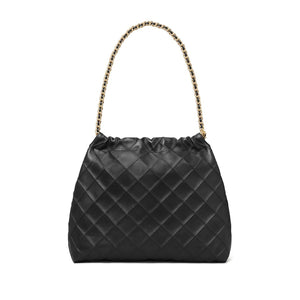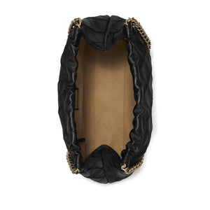 black leather diamond quilting drawstring fastening magnetic fastening two chain-link top handles chain-link shoulder strap logo charm main compartment internal logo plaque Fleming leather hobo bag Size and Fit - Width 14,17 in / 36 cm Height 11,81 in / 30 cm Depth 11,81 in / 30 cm