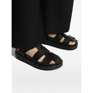 black multiple strap design logo detailing cushioned sole open toe flat base Kira Fisherman Sport leather sandals Size and Fit - Sole 3 cm