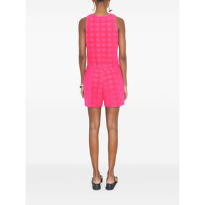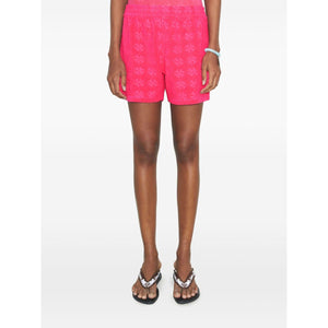 bright pink all-over pattern elasticated waistband side pockets raw edge hem Logo cotton shorts