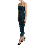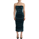 Dolce & Gabbana Turquoise Bustier Bodice Draped Midi Dress.