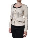 Valentino Beige Cotton Long Sleeves Round Neck Blazer Jacket