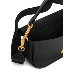 black calfskin maxi VLogo Signature logo stamp to the rear foldover top with magnetic fastening single detachable top handle adjustable detachable shoulder strap main compartment internal slip pocket slip pocket to the rear Alltime leather shoulder bag Size and Fit - DEPTH: 8.0 Centimetres. HEIGHT: 15.0 Centimetres. WIDTH: 23.5 Centimetres.