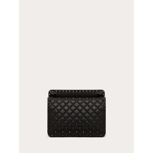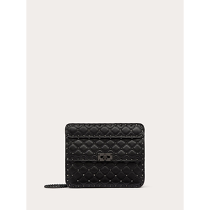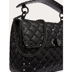 Valentino Garavani Rockstud Spike medium chain bag in soft lambskin nappa leather. Quilted and decorated with small tone-on-tone studs. The bag can be worn on the shoulder/cross-body or hand-held thanks to its removable handle and sliding chain.