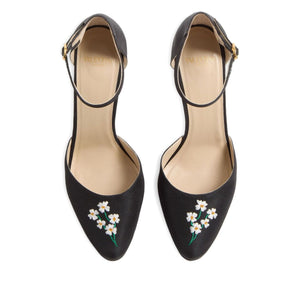 black buckle-fastening ankle strap high tapered heel floral embroidery branded footbed Hi Dolly embroidered pumps Size and Fit - Heel 10,5 cm