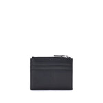 Valentino Garavani’s grained leather Rockstud Card Holder features a compact and sophisticated design. Featuring the iconic Rockstud studs applied on the front, it features a welt pocket with top zipper closure, ideal for storing coins or small items. The back panel features practical card slots, perfect for organizing essentials in style. An elegant and functional accessory, an expression of the maison’s distinctive aesthetic.