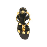 – Composition: 100% calf leather – Inner: Leather – Insole: Leather – Sole: Leather – Round toe – Open toe – Branded insole – Heel 10,5 cm – Decorative gold-tone metal studs – Adjustable tonal leather ankle straps – Thick heel – Made in Italy – Gender: WOMEN –