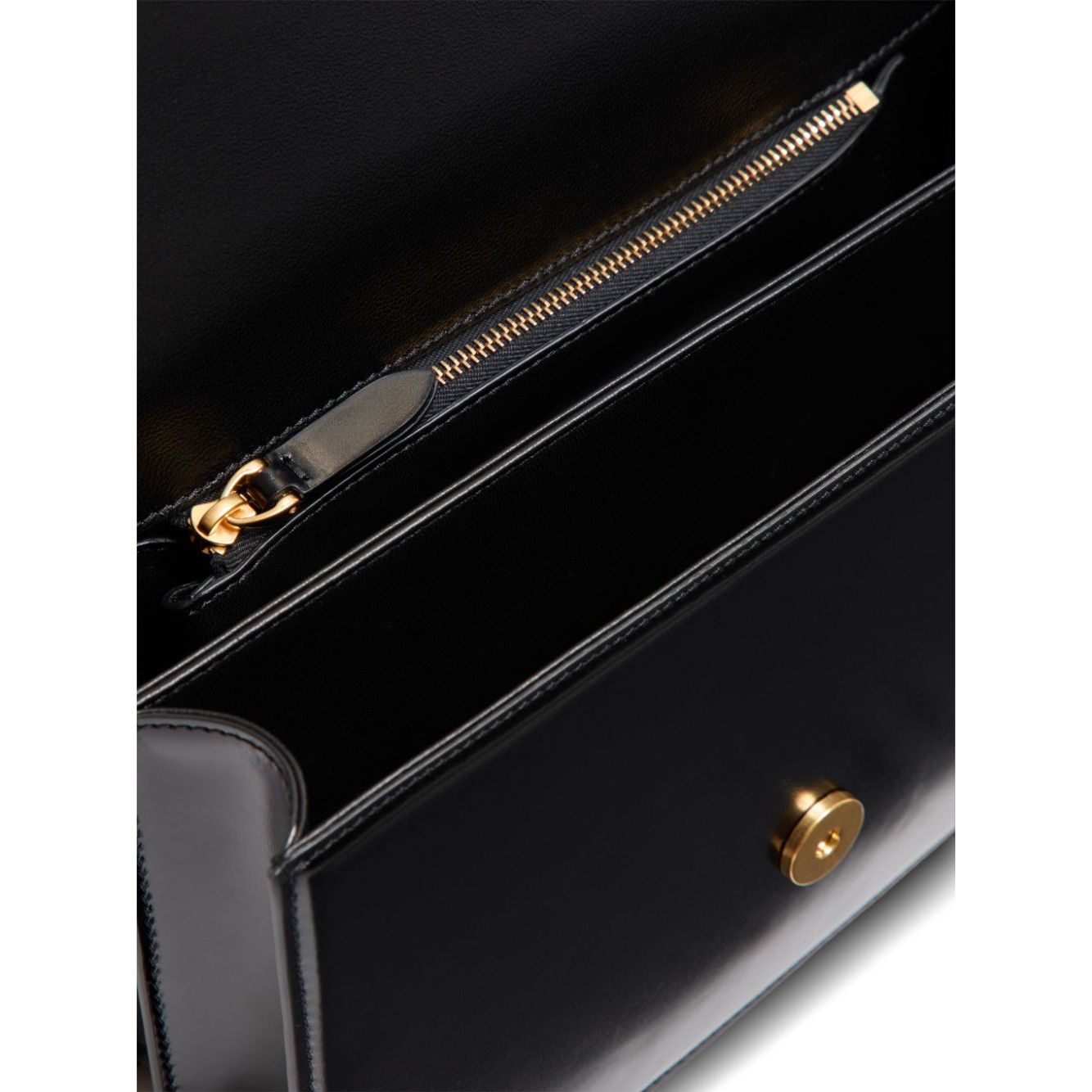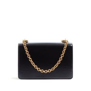black calf leather foldover top with press-stud fastening signature V logo plaque chain-link shoulder strap main compartment internal zip-fastening pocket Vain leather shoulder bag Size and Fit - Width 9,45 in / 24 cm