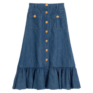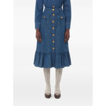 logo-embossed buttons Denim midi skirt Size and Fit - This piece fits true to size. We recommend you get your regular size. Model is 1,75m / 5ft 8in wearing size 40 (IT)
