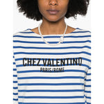 logo print to the front Chez Valentino striped t-shirt Size and Fit - This piece fits true to size. We recommend you get your regular size. Model is 1,75m / 5ft 8in wearing size S