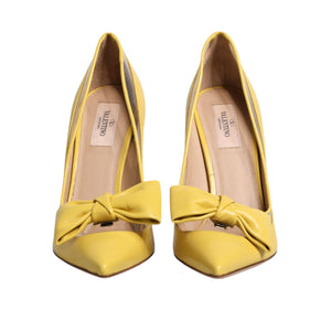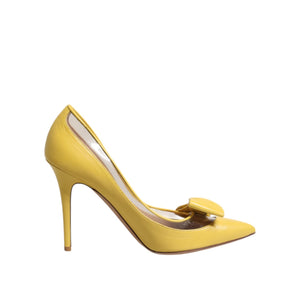 Valentino Yellow Patent Leather PVC Bow Heels Pumps Shoes
