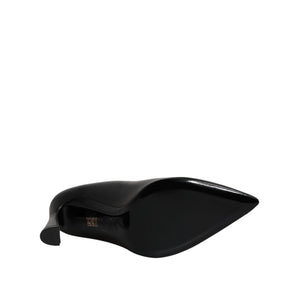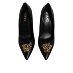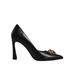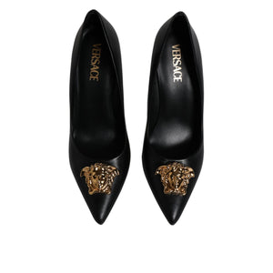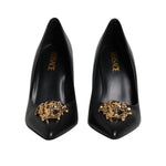 Versace Black Leather Logo Plaque High Heels Pumps Shoes